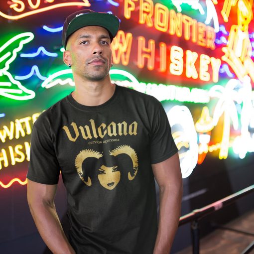 As for the Vulcana Gold Druid T-Shirt, it has everything you’ve dreamed of and more. Firstly, it feels soft and lightweight. Secondly, it has the right amount of stretch. Thirdly, it’s comfortable and flattering for all. And lastly, it features our beloved druid logo in a Gold printed tone in contrast with the black t-shirt. The gold color represents our crisp pilsner and will help you shine through the day.